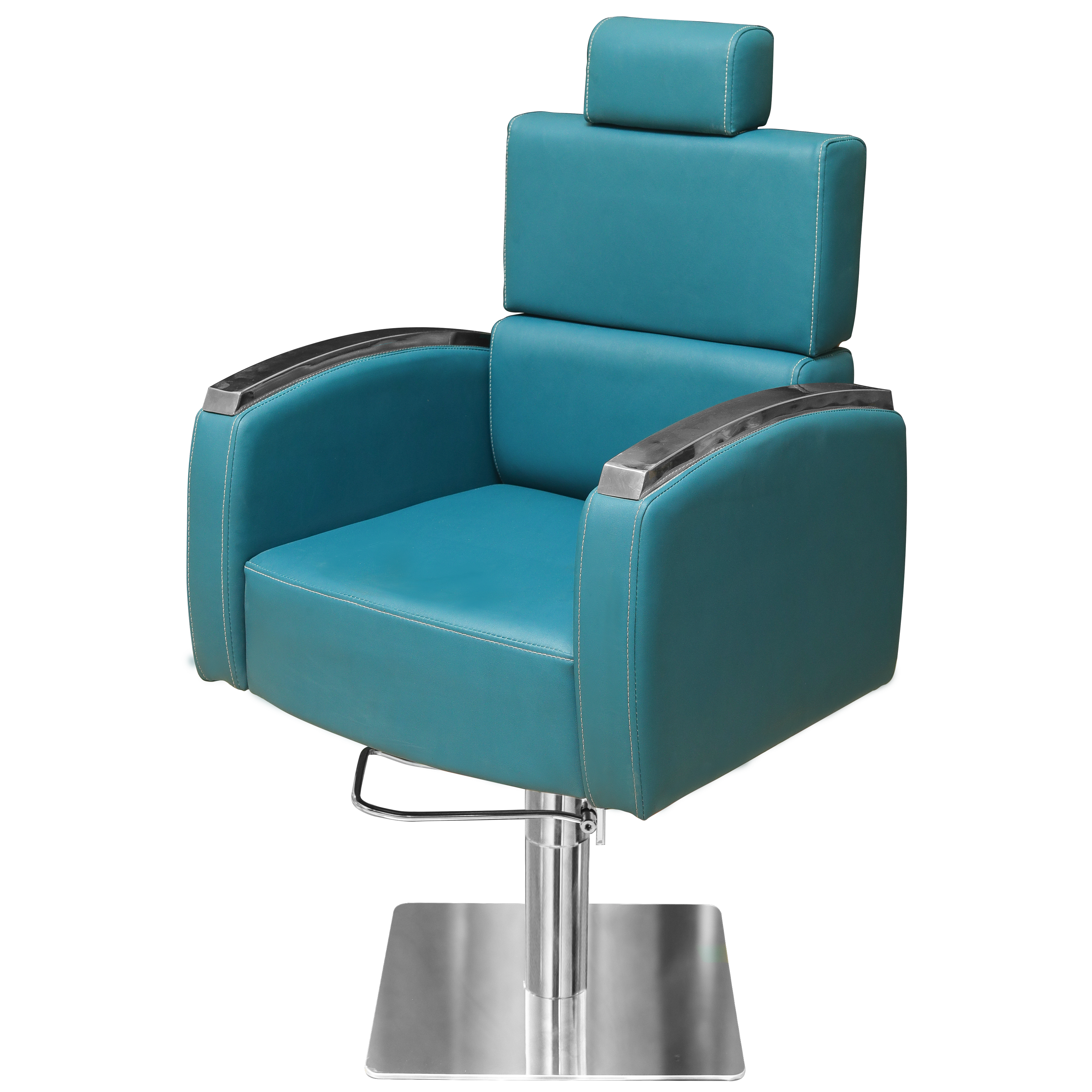 The seat and backrest are padded with high-density foam, offering plush comfort and long-lasting support. The adjustable backrest can be reclined to various angles, accommodating different client needs and preferences. The armrests are ergonomically designed, ensuring added comfort and ease during salon services.
